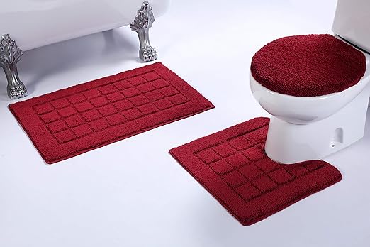 - 3 Piece Microfiber Bathroom Rug Set Contour Square Mat And Toilet Lid Cover