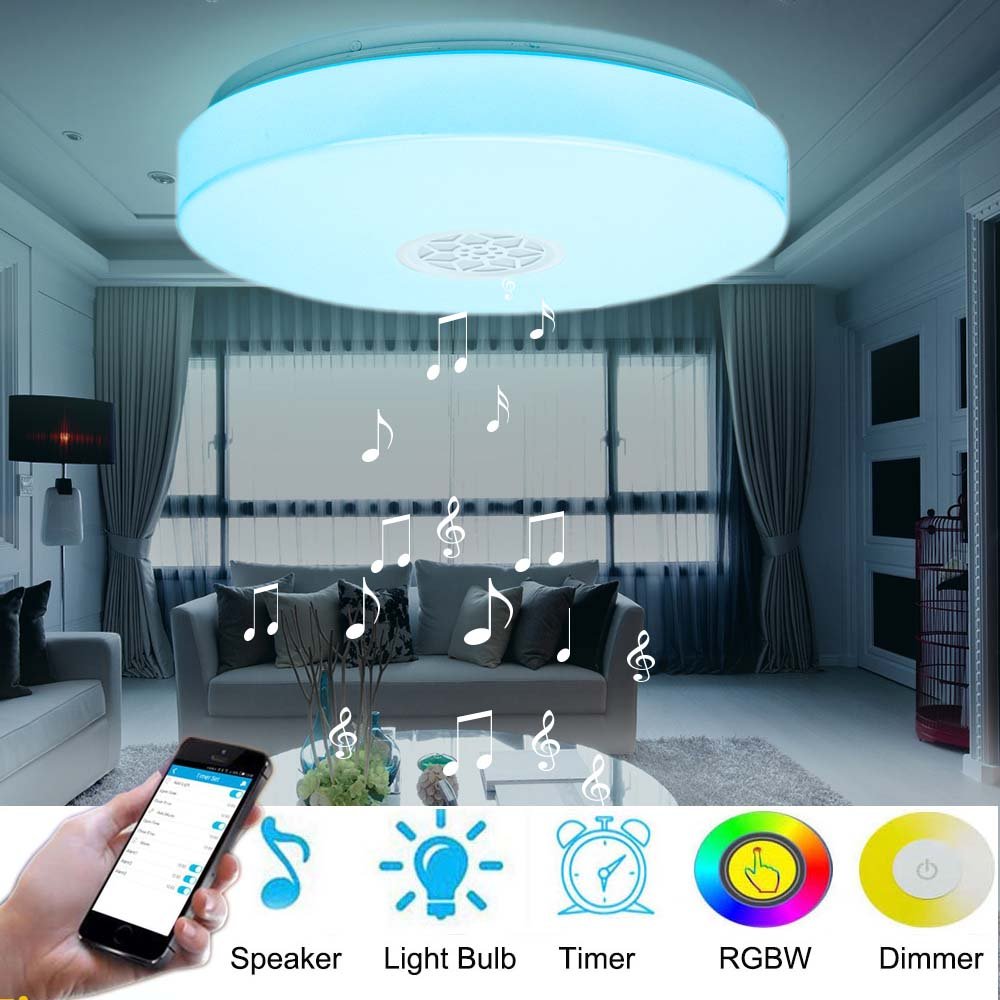 - Ceiling Lamp With Bluetooth Speaker Smart App Control Music Led Ceiling Light 24w Rgbw Dimmable Round Mount Lighting For Kitchen Bathroom Dining Room App Control Walmart Com Walmart Com