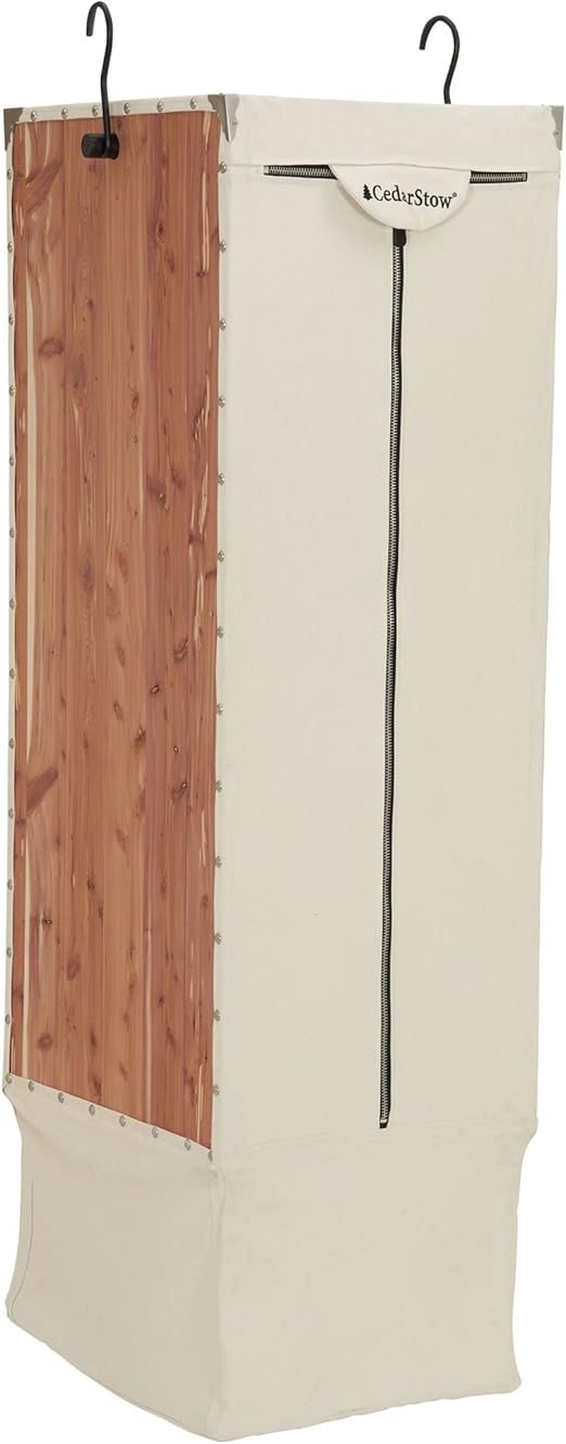 - Amazon Com Household Essentials Cedar Stow Long Garment Bag Hanging Wardrobe Off White Home Kitchen