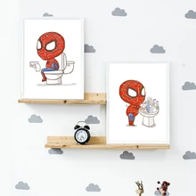 - Set Of 5 Superhero Bathroom Prints Aquaman Thor Wolverine Spiderman Wonder Woman Captain America Deadpool Batman Pooping Captain Marvel Superhero Prints Superhero Bathroom Marvel Paintings