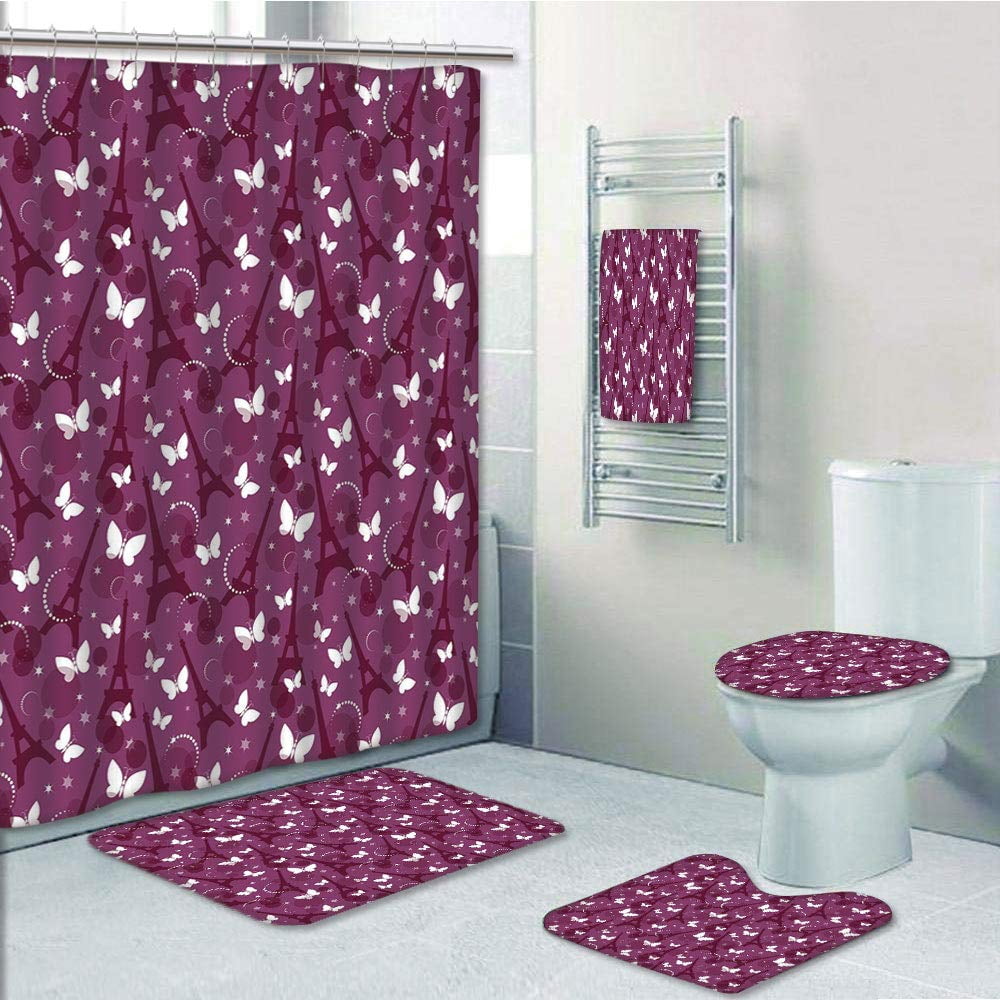 - Erehome Eiffel Abstract Composition With Towers Butterflies Stars Ethereal Display Violet Plum 5 Piece Bathroom Set Shower Curtain Bath Towel Bath Rug Contour Mat And Toilet Lid Cover Walmart Canada
