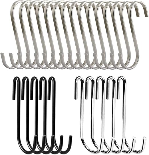 - 25 Pcs S Shaped Hooks For Hanging Plants Closet Rod Kitchen Pot Pan Afunta Heavy Duty Metal Hanger Organizer Utility Hooks For Keys Cups Towels Bags Garden Outdoor 2 Types Black Silver