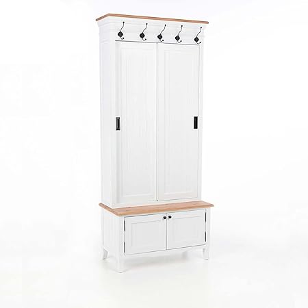 - Pureday Coat Rack In Landhaus Style White Natural 2 Sliding Doors 2 Hinged Doors For Approx B82 X Depth 45 Cm X Height 180 Cm Amazon Co Uk Kitchen Home
