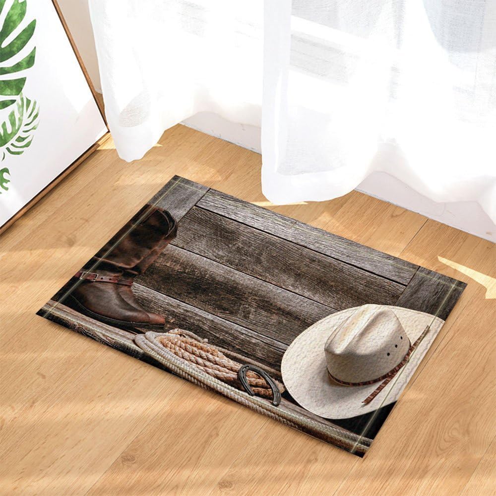 - Amazon Com Hisoho Western Decor Cowboy Hat Boots And Rope Against Retro Wooden Board Bath Rugs Non Slip Doormat Floor Entryways Indoor Front Door Mat Kids Bath Mat 15 7x23 6in Bathroom Accessories Garden Outdoor