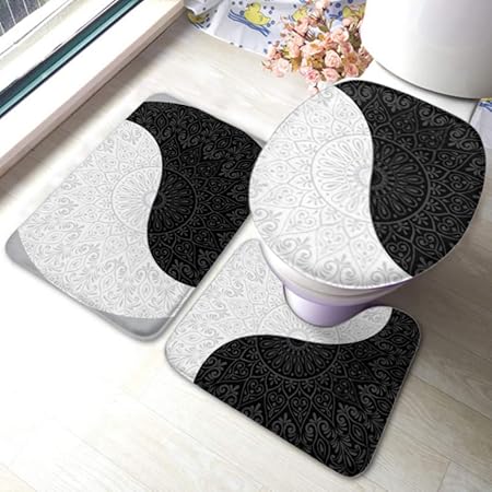 - Amazon Com Lyaoe Toilet Rug Set Drawing Black White Mandala Round Ethnic Non Slip Bathroom Rug Mat Sets Toilet Pad Cover Bath Mat And Toilet Lid Cover Home Kitchen