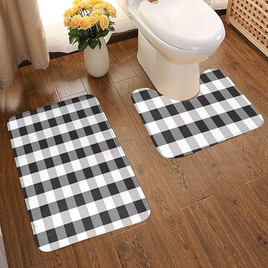 - Amazon Com Mdfhe Black And White Plaid 2 Piece Bathroom Rug Set Non Slip Bath Mats And Contour Bath Rug Combo Home Kitchen