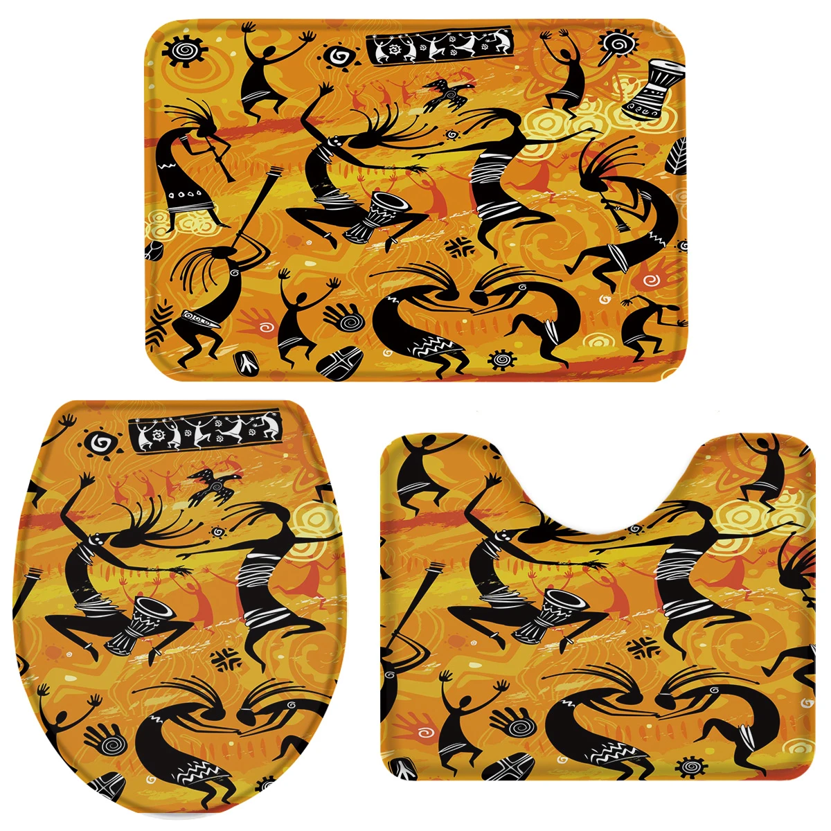 - Prom Dancing Primitive Style Aboriginal Art Orange Yellow Bath Set Toilet Cover Mat Pedestal Rug Non Slip Bathroom Rug Set Bathroom Accessories Sets Aliexpress