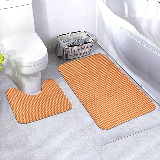 - 20x20 With Lid Cover 3 Piece Bath Rug Set Pattern Bathroom Rug 20x32 Large Contour Mat Orange Bath Rugs