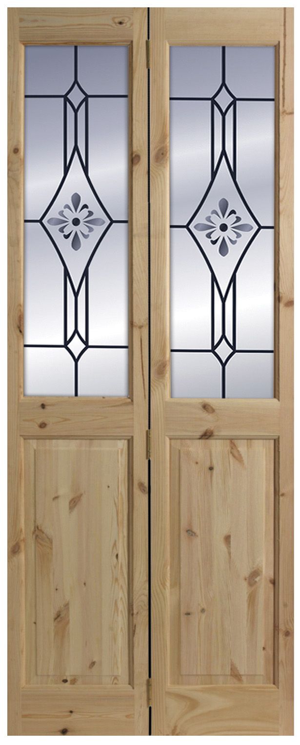 - 4 Panel 2 Lite Frosted Glazed Knotty Pine Internal Bi Fold Door Set H 2005mm W 715mm Departments Diy At B Q