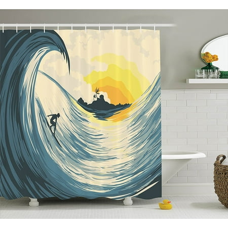 - Grunge Shower Curtain Illustration Of Tropical Island Surfer On Sea Waves And Palms At Sunset Fabric Bathroom Set With Hooks Orange Turquoise Black By Ambesonne Walmart Com Walmart Com