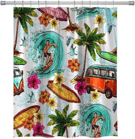 - Amazon Com Goodcare Cartoon Beach Surfing Decor Shower Curtain For Kids Palm Tree Surfboard Bus Waterproof Polyester Fabric Shower Curtains Bathroom Accessories 71 X 71 In Home Kitchen