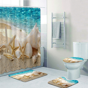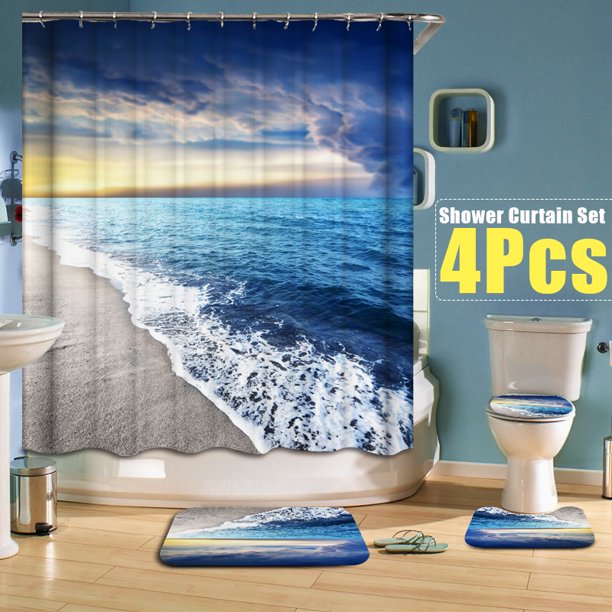 - Sea Bathroom Set Shower Curtain Seascape Beach Landscape Print Ocean Decor Fabric With Seashell Sets Us Off Toqueglamour