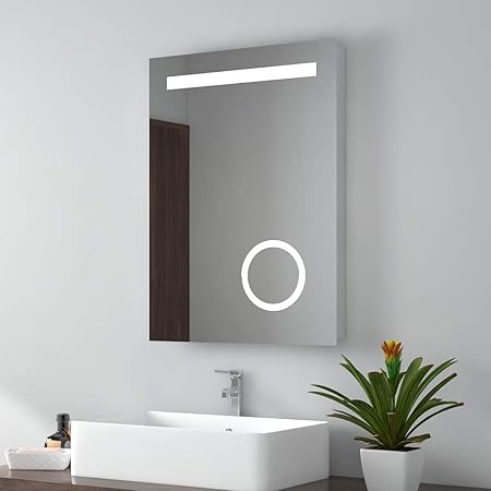 - Emke 500 X 700mm Illuminated Led Bathroom Mirror Led Mirrors Light With Shaver Socket 3 Fold Magnification Button Switch Demister Amazon Co Uk Kitchen Home