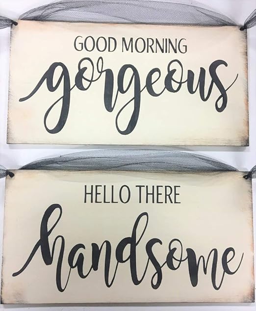 - Amazon Com The Little Store Of Home Decor Good Morning Gorgeous Hello There Handsome His Hers Couples Funny Bathroom Decorative Wooden Bath Sign Home Kitchen