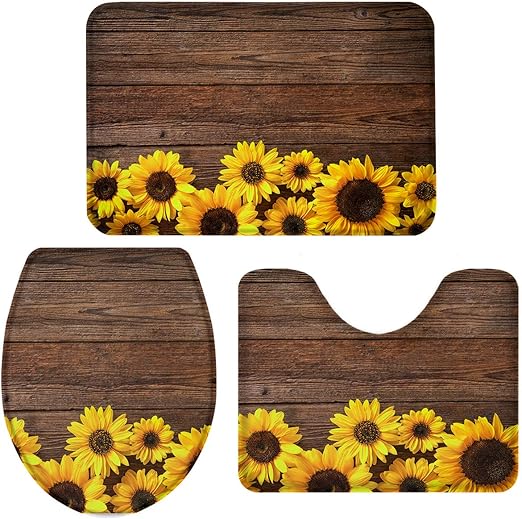 - Amazon Com Sunflowers Rustic Barn Wood 3 Piece Plush Bathroom Rugs Set Non Slip Water Absorbent Shower Bath Mats U Shape Contoured Toilet Mat Lid Cover 20 X31 16 X18 16 X20 Brown Kitchen Dining