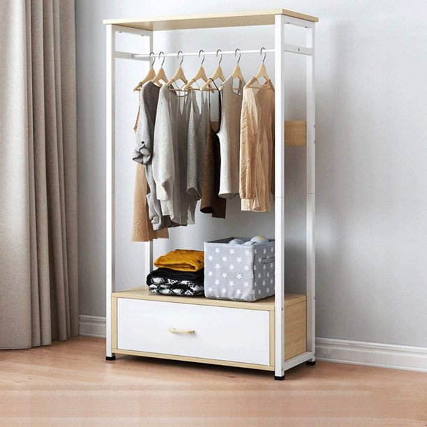 - Freestanding Clothes Closet Organizer Metal Garment Rack Open Wardrobe W Drawer Hanging Rod Clothes Garment Rack Storage Walmart Com Walmart Com