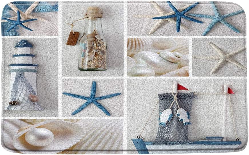 - Amazon Com Nautical Bath Mat Starfish Beach Seashell Lighthouse Ocean Theme Sea World Blue White Microfiber Memory Foam Bathroom Decor Mat Non Slip Backing 20x31inch Kitchen Dining